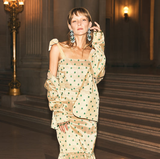 Desirae Embroidered Beaded Blazer - Light Gold/Mini Geometric Floral embroidery