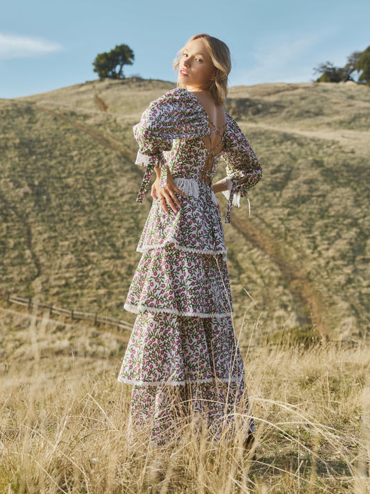 Peyton Puff Sleeve Fringe Top - Ivory/Amaranth Floral