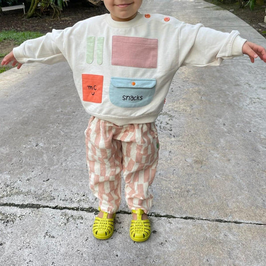 Checkered Linen Kid Pants - Natural/misty Rose