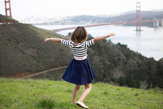 Lightweight Blocked Organic Skater Dress - Classic Blue