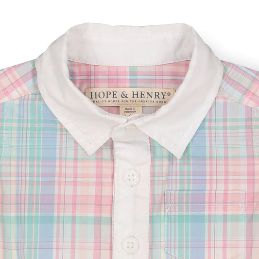 Baby Organic Ruched Bodice Party Dress - Taupe Gingham Seersucker