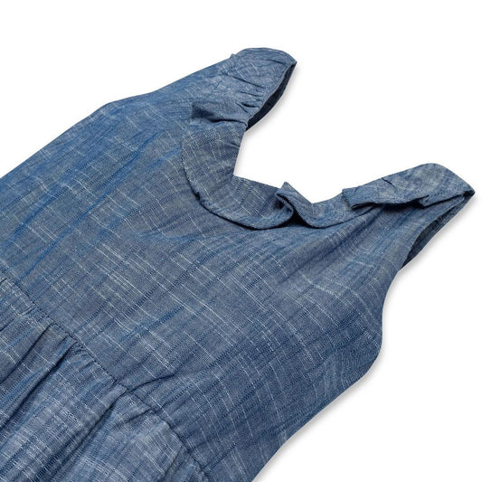 Baby Ruffle Neck Organic Jumpsuit - Chambray
